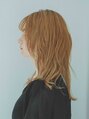 ハイトーンのゴールド感が華やかさとかっこよさを放つ外 人風セミディ。前髪は薄く作り今っぽさを。リップラインあたりからレイヤーを施し、躍動感と軽やかさを。カラーリングのハイトーンゴールドをいかすためカットデザインはシンプルにしてあります。