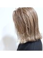 ハイトーンベージュの外ハネスタイル。オイルやバームでしっかりと艶感を。