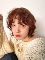 前髪あり/パッツとボブゆるふわミックスパーマ/オレンジベージュ