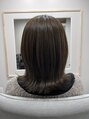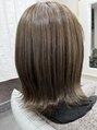 赤味消しオリーブグレージュカラーに仕上げました!外ハネスタイルにぱつっとカット!