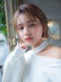 透き通るようなカラーと、透け感のあるスタイリングのヘアスタイルです!カラーはブリーチをして、ミルクティーベージュの色に!!切りっぱなしボブにシースルーなバング、おくれ毛がとてもかわいいです。セットも簡単おすすめヘア!