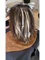 ■ハイライトダブルカラー■赤みを抑えたカラーにするには、細かくブリーチハイライトで脱色してから色を入れるとGOOD◎