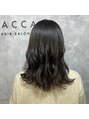 カット/肩下の外ハネロングカラー/暗めのモカアッシュ