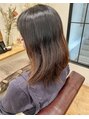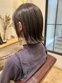 ハーフアップで結べる長さの外ハネ切りっぱなしボブです。赤みのでないルフレカラーのグリーン系カラーで、根元が伸びてきても気にならないダークトーンに染めました◎