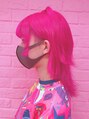 全頭ピンクでイメージチェンジ!近めのハーフツインとカールした横髪が二次元感があり可愛いアレンジになっています☆