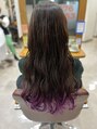 毛先5センチブリーチしてあります。上は落ち着いたパープルブラウン、毛先は赤みのある紫のカラーのポイントカラーで染めてます!