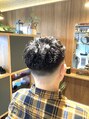 上はフォワードスパイラルをあてることにボリュームを抑えながら波打たせるようなパーマに。周りをミドルスキンフェードにすることでスパイラルパーマ独特の流れを強調できます。