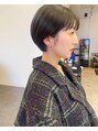 ラウンドしたワイドバンクに束感のでやすい質感にカット!!カラーは暗めでも透け感のでるナチュラルなマットベージュ。清楚さと・お洒落さを兼ね備えた可愛いショートスタイルです!!セットも簡単にできる様に計算してカットしてあります!!