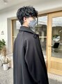 モードな雰囲気漂う『マッシュウルフ』前髪、フロント付近を中心に癖毛風な無造作なパーマをかける事でよりメリハリがつきお洒落なバランスへ。柔らかめのグリースをつけるだけなので毎朝のセットも楽ちんです♪