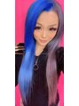 もともとブリーチしてたのをリタッチブリーチをぬけるだけぬいてからカラーバターで原色ブルー、カラーでグレイのツートンに エクステはおへその長さに原色スカイブルーと原色グレイを60本