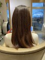 明るく退色したところに赤みをなくすカーキと柔らかいベージュを混ぜた、暗めの大人スタイルです!落ち着かせて普段のスタイルに馴染むようにナチュラルなスタイルに仕上げました