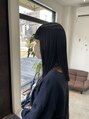 ライン感を出したワンレングスに幅広のパッツン前髪。ブルーブラックのカラーがモードでカッコいいです!