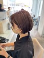 首周りスッキリなボブスタイル。プラチナブラウンカラーに白髪ぼかしのハイライトもたっぷり入っています。
