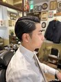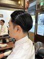 クラシックなポンパドールスタイル。えりあしだけテーパーフェードでサイドはもみあげのみの刈り上げ。このスタイルを希望の方は西村を指名後、クーポンをお選び下さい。