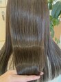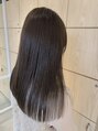 毛先のぷっつり感がかわいいロングスタイルです。少し重さを残しカットしています。赤みやオレンジ味を抑えたオリーブベージュカラーです。
