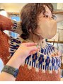 顔まわりもしっかりカールをかけて、縛ってもかわいいミディアムパーマヘアです。