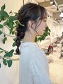 セミロングのお呼ばれヘアアレンジです。人気の編みおろしスタイルです。上品なイメージにふんわり柔らかな空気感を感じるヘアデザインです。結婚式、パーティー、デートにもおすすめです。