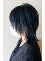 青みたっぷりの暗髪は色落ちも綺麗ですし赤みが残りにくいので、次回のカラーにも影響しにくいのがポイント!モードな質感のウルフと合わせてかっこかわいいスタイルに