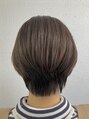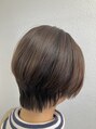 ハンサムショートのスタイルです。前下がりで襟足はスッキリさせているので、ハイネックやマフラー、襟付きの服など相性が良いです。