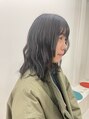 ナチュラルブラックで艶髪に。光に当たるとダークブラウンで透明感あるミディアムヘア。前髪とリップラインにあたるよサイドの毛先がポイントです。