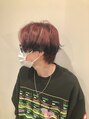 - メンズのデザインカラー、センターパートに、カット後ブリーチレッドを入れた後に毛先にブラックでクールに