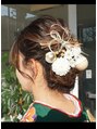 成人式のヘアセットと着付けです。ゆるくまとめたスタイルに飾りをつけて華やかにしました。