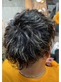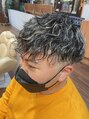 カットは一周スキンフェードで2ブロック。上はレイヤーがしっかり入ったマッシュをベースにカットしてます。カラーはメッシュパーマは波打です。