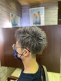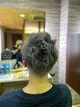 刈り上げ2ブロックにブリーチして根本は暗めのグレーに毛先シルバーのブリーチオンカラーです。