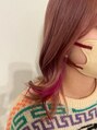 全体ブリーチをしてピンクカラーに濃いピンクのイヤリングカラーをアクセントに入れました!