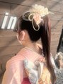 ストレートのポニーテールに可愛い髪飾りと金箔で華やかな艶髪ヘアセットに☆