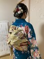 ローシニヨンのタイトなアップスタイル。髪飾りと水引、金箔で華やかに仕上げました。