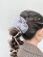 ゆるっとローポニーとボリュームたっぷりのチュールリボンを組み合わせたアレンジです♪