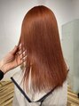 ブリーチを1回してナチュラル目なオレンジをつくりました。オレンジは、比較的発色しやすいのでブリーチも優しく最低限のダメージで抑えました。オレンジ感は、もっと出せます。