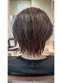 襟足の部分をブリーチしてその後色味を少し入れました。ベースの色は暗めのシルバーです。襟足の色味が日に日にいい感じに抜けて長く楽しめるスタイルです☆