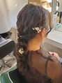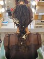 お客様にご持参いただいたお花の髪飾りで華やかに。所々にアクセントとして金箔を