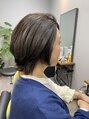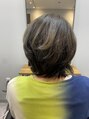 ハイライトの入ったミディアムショートボブにブルー系のカラーをのせました。