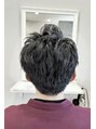 くせ毛を活かしたツーブロックショート。柔らかめのワックスをもみ込んでカールを活かしてセット。