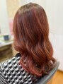 ハイライトレイヤーカット透明感ピンクブラウンロング