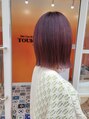 白髪ぼかしで前々回にハイライト&ブリーチ全体的にしているので、黄色を消しつつ明るめのピンクカラーにしました。R-JPNのオイルケアをしながらカラーしています。頭皮が荒れてカラーが心配な方も相談ください。
