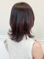 お客様ヘア。女性らしいくびれヘア。大人気のウルフカット、カラーはピンクベージュでかわいく。