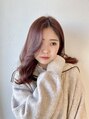 春を意識してピンクブラウンでカラーしました。透明感を持たせつつしっかりと色味があり可愛らしさを感じられるカラーです。顔まわりのレイヤーカットでふんわりも動きと柔らかさを表現しました。