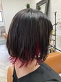 インナーカラーの原色系レッドです。塩基性カラーですのでカラーの持ちもよくおすすめです。色々な色があり、1度のブリーチで2回位は楽しめますので一度ご相談ください。