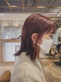 くすみレッド/ミディアム/切りっぱなし/外ハネ【1ブリーチ】
