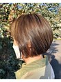トップは丸みを出してふんわりと襟足はスッキリが可愛らしいショートボブスタイル。