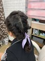 小学生の入学式のアップスタイルです。クセ毛の方でしたが、逆にクセ毛を活かしたスタイリングになりました。