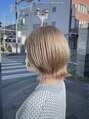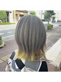 ミディアムレイヤースタイルにブリーチをして、全体はシルバーでインナーにイエローをアクセントになるように入れました!髪質によっては、ブリーチが2回以上必要な場合があります!