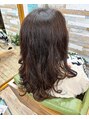 カット、ウルティア修復マグネットデジタルパーマ。毛先とボリュームのメンテナンスカット。酸性薬剤で、毛先3回転のデジタルパーマ。柔らかさと艶とカールを付与。