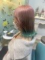 ピンク ボブ ハイトーン 裾カラー ターコイズ/ホットペッパービューティー