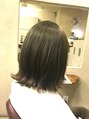 肩につくラインのボブです。ハイトーンだった髪色にネイビーアッシュを入れました。