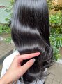 毛先は以前のブリーチが残っていたのでそれを活かしてダークグレーに。ただの黒髪じゃない、グレイッシュなモードさを兼ね備えたツヤ感たっぷりのカラーです!